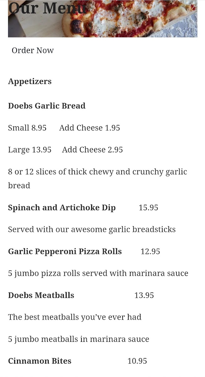 Welcome to Doebs Pizzeria, a culinary gem located at 503 W 17th St, Holland, MI. Here, the menu is a vibrant tapestry of flavors, showcasing a delightful mix of hand-crafted pizzas, pasta, and sandwiches that boast authenticity and freshness.